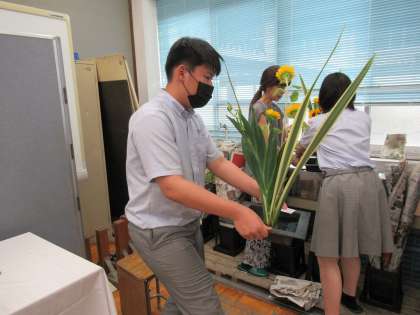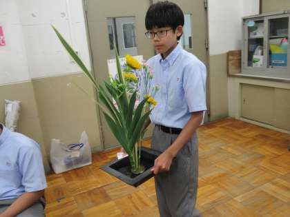初めてのいけばなは、想像以上に、良い体験となったのではないでしょうか。2年生の皆さんの表情が、そう感じさせてくれます。