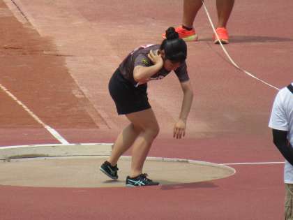 1投目はファールとなりますが、攻めの気持ちがうかがえます。そして2投目は決めて8m56、勝負の3投目にかけます。結局、ぎりぎりのところまで攻める投擲は、惜しくも決まりませんでしたが、この後の競技につながる貴重な経験になったと思います。