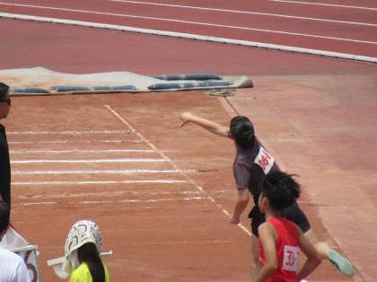 予選の競技が始まりました。Aさんは、13番目の投擲(とうてき)です。