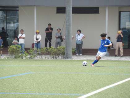 バックス、ハーフが一丸となって、相手の波状攻撃に耐えます。そして何とか前線につなごうと、O選手が起点となってチャンスメークに努めます。全員全力のパフォーマンスです。頑張っている!