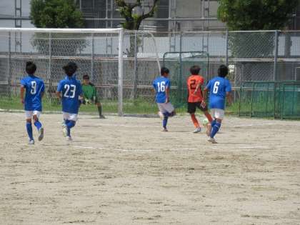 2点を追う形となった九条中、これ以上点を許す訳にはいきません。相手チームの速い球出しにも対応し、懸命のディフェンスで追加点を許しません。ナイス、ディフェンス!