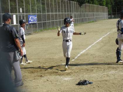 打線は続き、出塁のNさんが2塁へ盗塁。ここでキャッチャーの送球がそれるのを見て一気にホームへ。相手のスキを突き、見事、同点に追いつきます。やったー!
