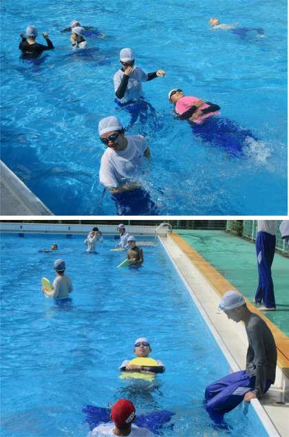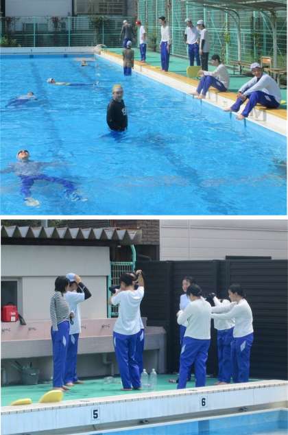 【3年生水泳学習 着衣泳の様子】