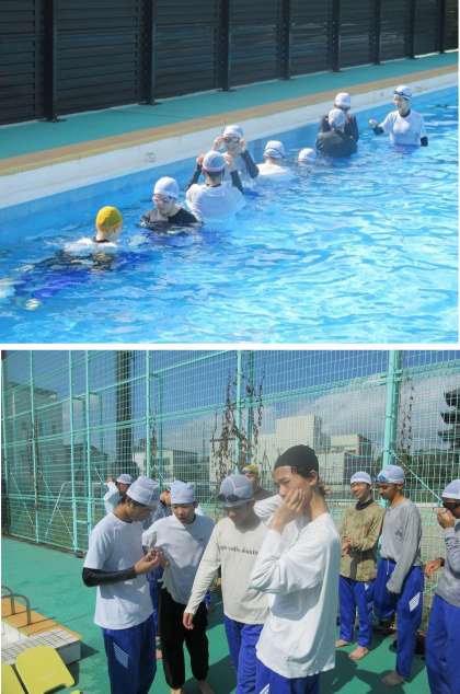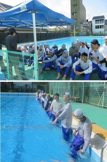 着衣泳とは、衣服を着たまま水中で安全に行動するための泳ぎ方を学び、水難事故時の生存率を高めることを目的とした学習です。今回の学習を通じて、水を含んだ衣服が水中での動きをいかに妨げるのかを実際に体感できたと思います。間もなく夏休みに入り、水に触れる機会もあるとは思いますが、今回の学習経験をもとに、常に安全面を意識して楽しんでほしいと思います。