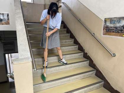 放課後、本館西階段を掃除しているMさんの姿を見つけました。階段が汚れていたので、自ら進んで掃除をしていたとのこと。この「気づき」や「動こうとする気持ち」は、簡単なようでいて、とても大切で尊いことだと思います。Mさんありがとう!