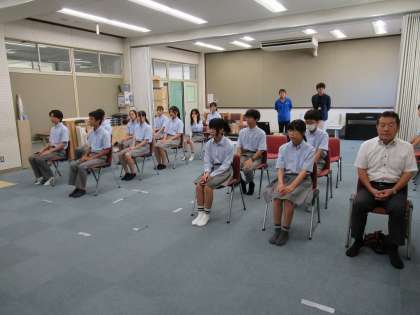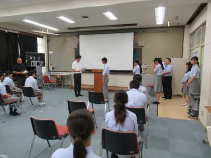 本日、1学期の終業式を、リモートで行いました。これは、熱中症対策で、発信基地からの映像をクーラーのきいた各教室で視聴してもらいました。