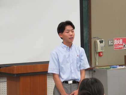 生徒会本部役員を代表して、環境委員長S・Kさんから、全校生徒の皆さんへ力強い言葉を送ってくれました。