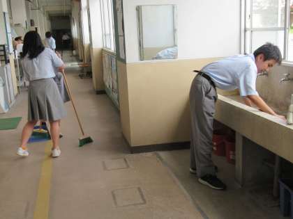 普段、使っている学年フロアや特別教室だけでなく、共用の場所や屋外もきれいにしてくれています。