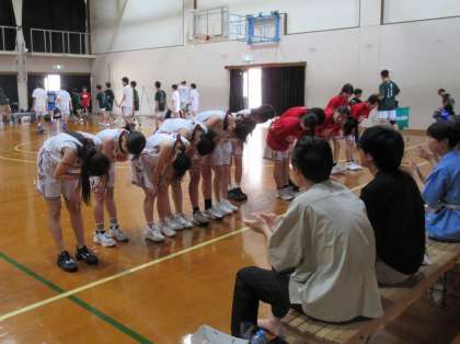 涙をこらえ、感謝を伝える女子バスケットボール部の皆さんです。
