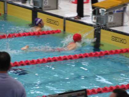 女子200m自由形、午後の決勝の舞台に、N・Sさんが登場してきました。予選を6位で通過していますが、近畿大会出場には、5位以内が求められます。
