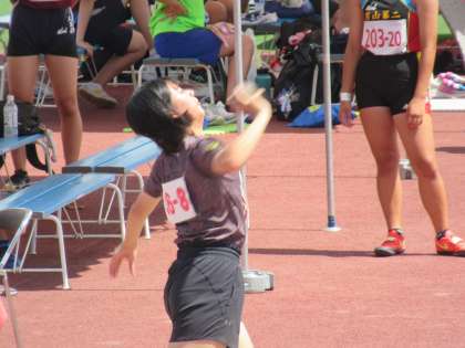 本日1日目には、3年A・Rさんが、砲丸投に挑んでくれました。市内夏季大会で自己ベストを大幅に更新したものの、その後の通信陸上大会では思うような結果が出せず、今大会にかける意気込みな並々ならぬものがありました。