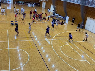 昨日(7/27)に、K大学附属中学校にて、女子バスケットボール部の下南カップが開かれました。リーグ戦ということで、半日の間に3試合を行います。陸上競技の砲丸投げを見届けたあと、ダッシュで到着したところ、3試合目がスタートするところでした。