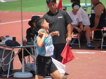 本日2日目を迎えた京都府大会陸上競技の部、男子砲丸投に、2年K・Rさんが登場してきました。
