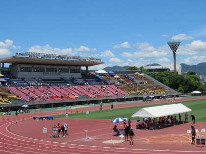 昨日は、「わかさスタジアム京都」で、ご近所のT羽高校野球部が、夏の高校野球京都大会決勝に臨んでいました。母校の野球部の応援にきていた陸上の先輩Mさんの激励を受け、3年Aさんも躍動の競技を見せてくれました。