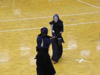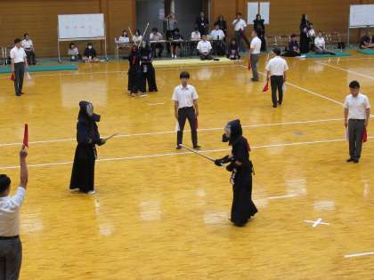 常に強気で攻めるI・Hさん、先に有効打突を放ちます。主審の旗が上がるものの、これは流されます。惜しい!そして戦いは延長に入ります。