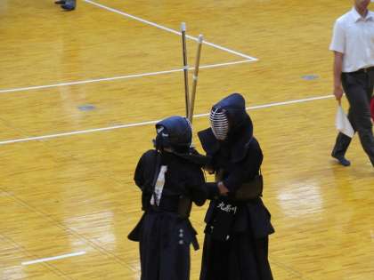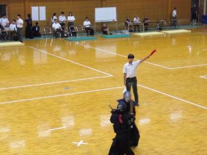 強気の姿勢は変わらず、いきなり面を決め1本先取です。しかし、相手もそうやすやすと勝たせてはくれません。ここで籠手(こて)を決められ、両者1本ずつとなります。