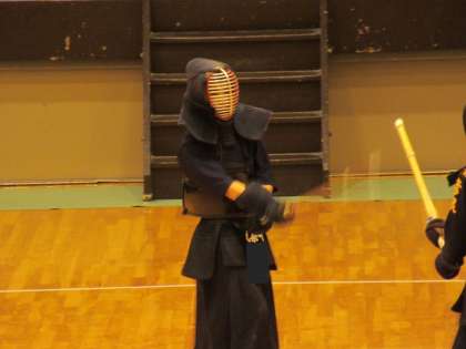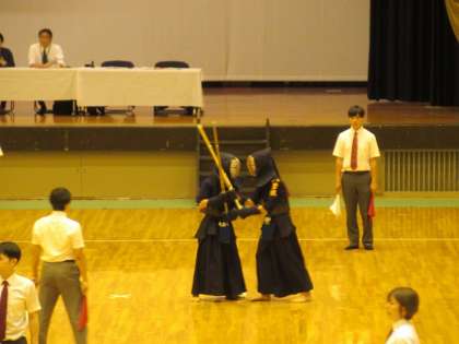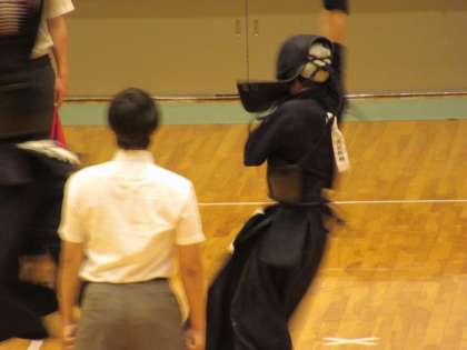 そして、相手S選手が面を打ってきたところに合わせて、胴を放つIさん、惜しい!戦いはお互い譲らず、延長に入ります。