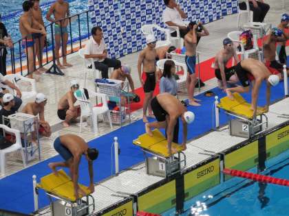京都府大会で、この近畿大会出場を決めてから「決勝に残る!」をチームの合言葉に、厳しい練習を重ねてきたそうです。第3泳者を任されたSさん、並々ならぬ決意の中、その時を待ちます。