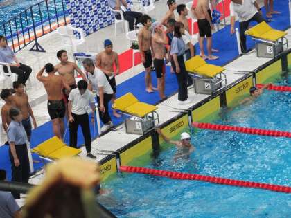 最終泳者も、仲間の思いを受けて、なんと更に順位を2つ上げ、この組4位でゴール。全体でも、トップ10どころか第4位となり、堂々の決勝進出です。やりました!あっぱれです。