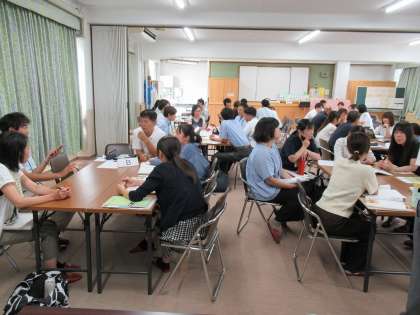 何より教職員の皆さんも混ざり合って対話的に研修を進めていただきました。外の暑さに負けないくらい、熱い意見交流を進めていただきました。