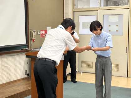 まずは、伝達表彰です。今回は、美術部と吹奏楽部より、うれしい知らせをお伝えすることができました。受賞の皆さん、おめでとうございます。