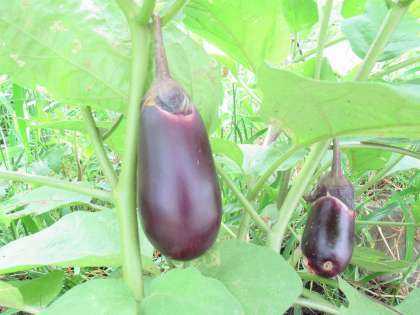 すると見事に成長したナスが2つ、お礼を言っているかのように生き生き実っていました。皆さん、ご苦労様です。