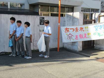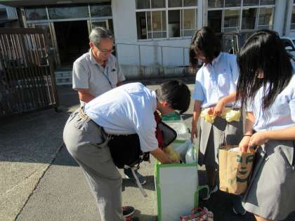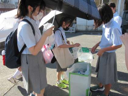 本日、朝の登校時に、9月の回収運動を実施しました。毎回のことですが、今日も、登校してくる生徒の皆さんから、たくさんの回収物の提供がありました。
