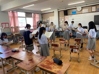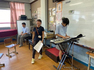 青団のソプラノは音楽室での取り組みです。電子オルガンを用いて練習していますね。良い感じでしたよ。赤団もパート練習がスタートです。