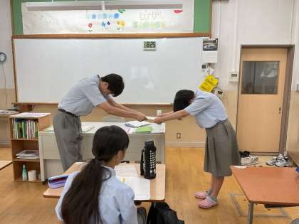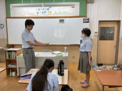 こちら4・5組でも、生徒会本部役員のKさんから賞状が渡されました。「おめでとうございます!この調子でがんばって下さい。」