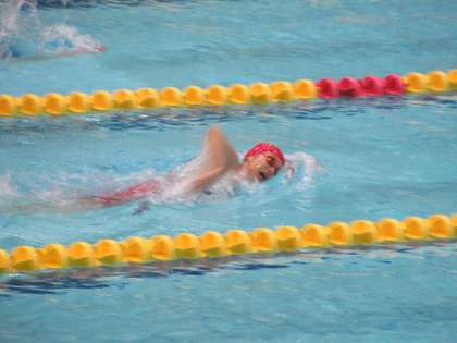 まず最初に登場してきたのは2年N・Sさん、女子400m自由形に臨みます。ランキング1位のNさんが第4レーンに立ちます。