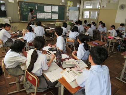 調理の手順について、注意することを出し合い、考えを深めているようです。調理実習に向けての取組かな?生徒の皆さん、積極的に発言している様子が印象的でした。よい学習です。