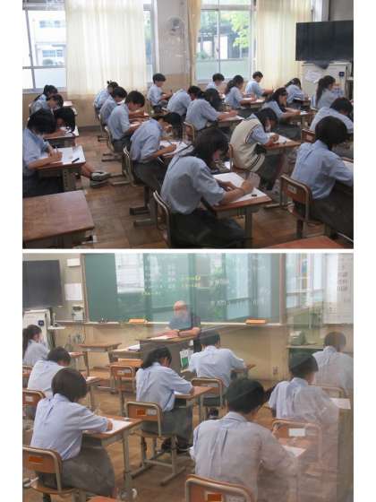 こちらは、1年1組と2組の様子です。皆さんしっかり取り組めていますね。第1回テストでの経験が生かされているようです。