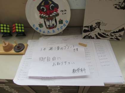 テスト終了後、答え合わせをしたり点数予想をしたりする会話が聞こえてきました。皆さん、実力を発揮できたでしょうか?この後の学習につなげていってほしいと思います。