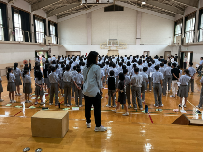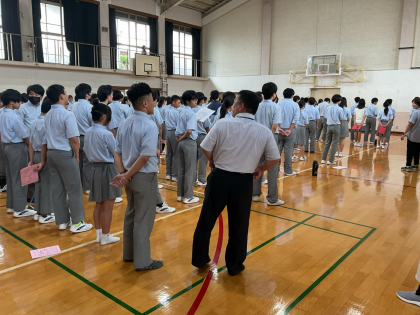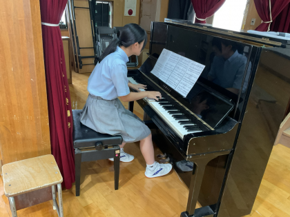 続いては、全校合唱です。曲は「マイバラード」です。伴奏者は3年生のMさんです。6限が始まる前に「ちょっと練習していいですか?」とほんの少しの隙間時間を活用していました。歌詞が完璧!とまではならず、確認しながらの合唱練習です。