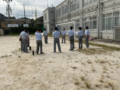 おっ、グラウンドで練習している色を発見しましたよ。そうです、特別教室の割り当てではないのですが、グラウンドでの練習は可能なんです。声量を意識した練習ですね。