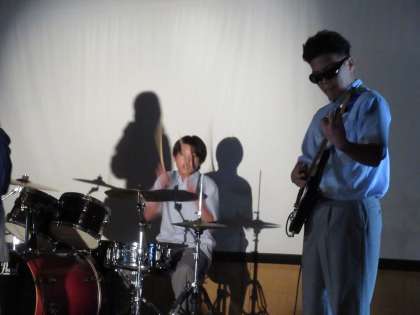 休憩中のセッティングからカッコいいね、Aバンドです。なんと1年生、2年生、3年生のメンバーで結成されたAバンドは、J−POPの人気曲を演奏してくれました。