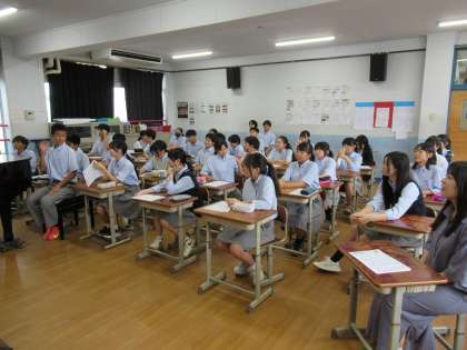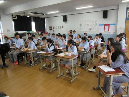 こちらは「赤団」です。先日の文化祭「たてわり合唱コンクール」の模様を、映像で振り返っていました。さすがに、盛り上がっていましたねぇ。