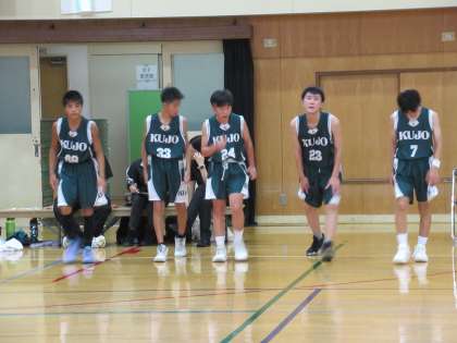 残り2分36秒、九条中はここでタイムアウトを取ります。息詰まる攻防の中、一息入れてからチームの気持ちを一つにして最後のコートに向かいました。