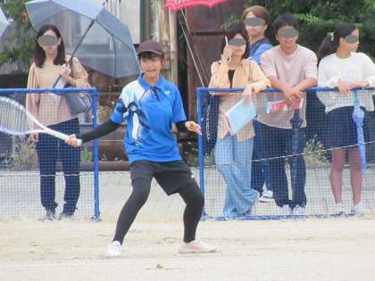 第5ゲーム、相手S中学ペアに3ポイントを先行され、一気にゲームポイントを握られます。それでもNさんのレシーブとSさんのネット際のボレーを生かし、5−6まで追い上げます。しかし、あと一歩というところで相手に決められ惜敗となりました。