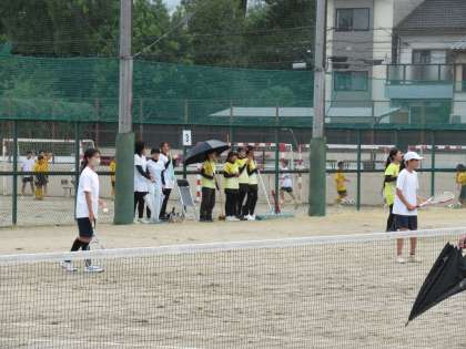 第1ゲームは相手R中学ペアに圧倒されたものの、第2ゲームは見事なプレーを連発します。なんとデュースを3度繰り返す接戦となりましたが、ここは気持ちを切らさず7−5で取り返したのです。やったー!