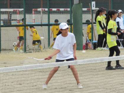 そして、同時進行で、初級の部第2コートでは1年生のS・Mペアが熱戦を繰り広げていました。