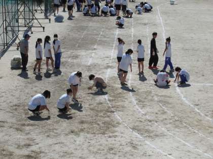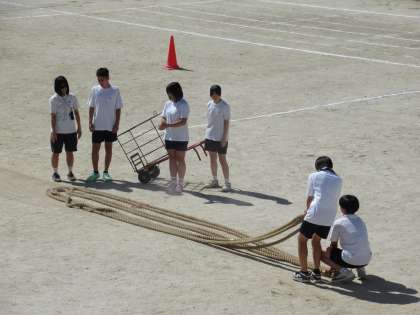 こちらは、「綱引き」の練習を終えて、グラウンドの草引きや用具の片づけをしてくれているところです。こういうことが表舞台を支えるのです。ご苦労様でした!