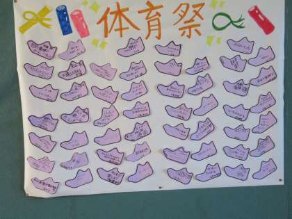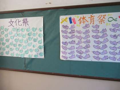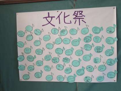 こちらは1年生です。文化祭や体育祭に向けて、それぞれの目標や意気込みを書いてくれたカードを掲示しています。