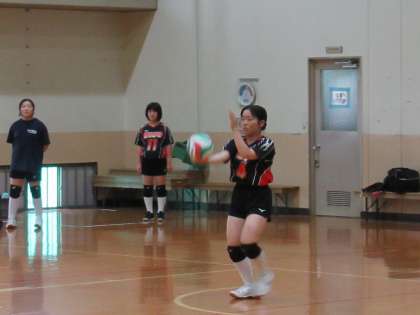 第1セットの立ち上がりは、先行される展開となります。しかし、ここでムードを変えてくれたのがOさんのサーブとUさんのサーブです。見事に決まり、会場が盛り上がります。