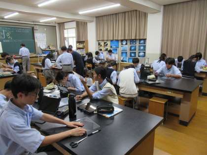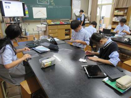 昨日4限に、1年1組の理科の授業を覗かせていただきました。生徒の皆さんは、反射の学習として「テレプロンプター作り」に取り組んでいました。