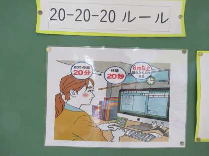 また「20−20−20ルール」という掲示が...それぞれ「20分、20秒、20フィート(約6m)」という単位が付くようです。興味津々!ぜひ、確かめてみてください。