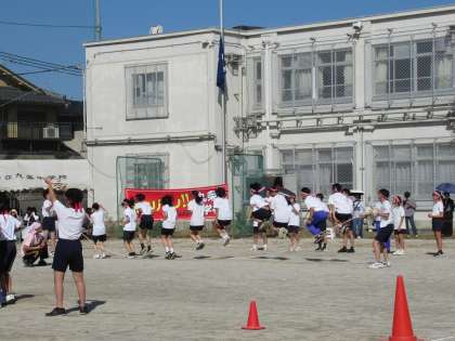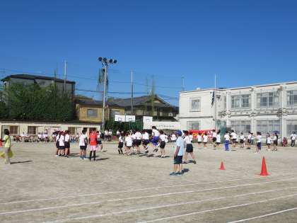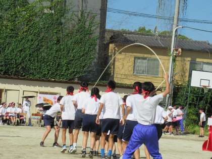 この競技は、各団10人で2回跳び、その合計で競います。よーい、スタート!
