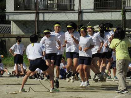 この大縄跳びは取材班も経験がありますが、なかなか難しい。タイミングを合わせてのジャンプもそうですが、縄を回す人との呼吸が大切です。