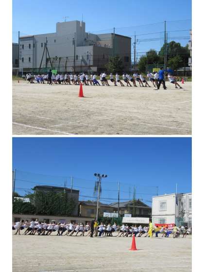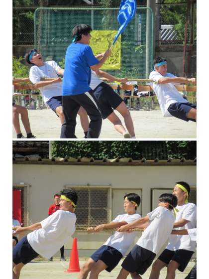 プログラム6番は「色別対抗綱引き」です。対戦は抽選で決まります。