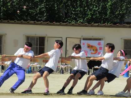 第4試合は、「赤VSピンク」です。チームの先生方も懸命に旗を振ります。見ている方も力が入ります。さあ、どっちだ!